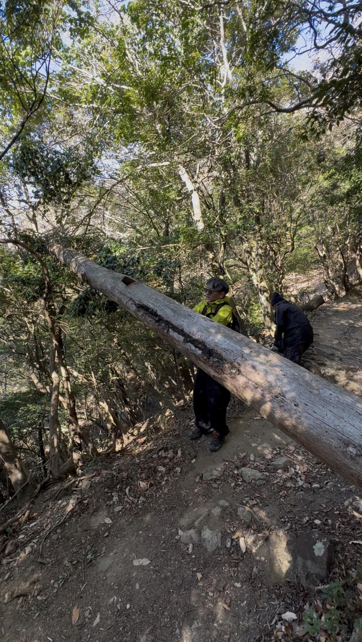 1人で太い木を処理されていたので、見て見ぬふりができない社長がお手伝いをしました。(本日の写真はその時の一部です。)